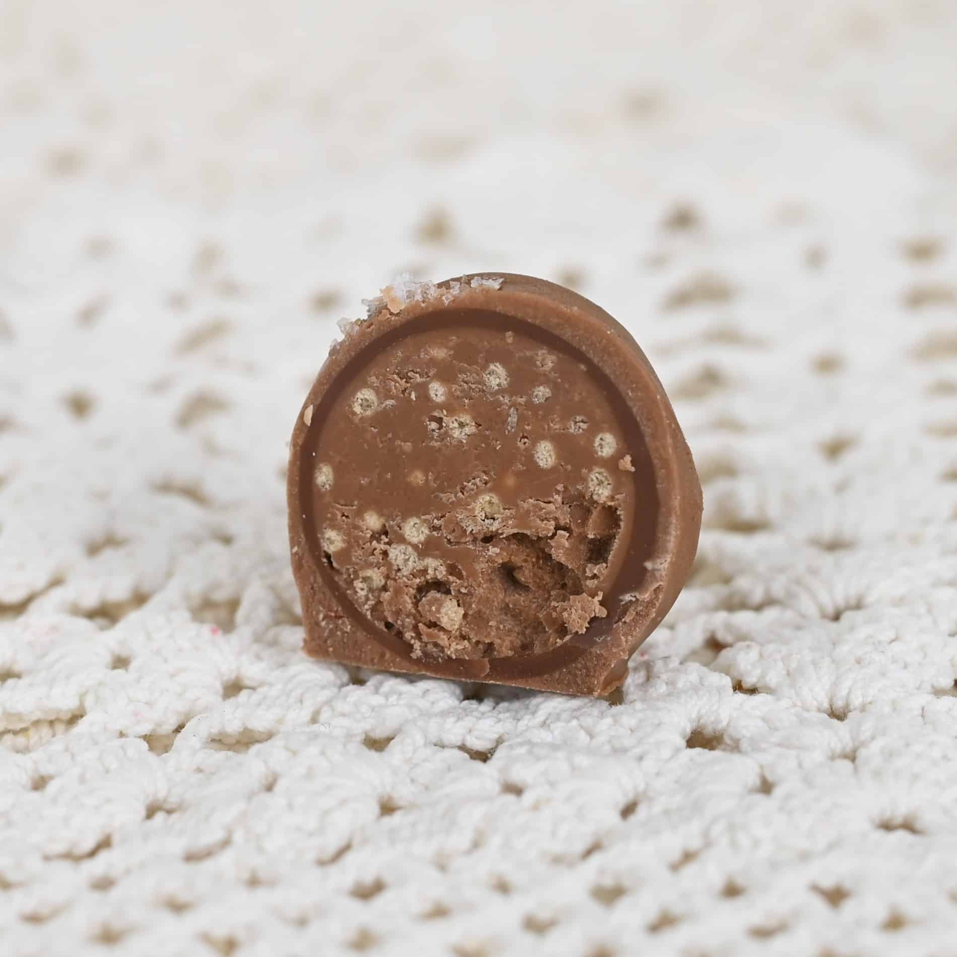 Ainesosat: sokeri, kaakaovoi, täysMAITOjauhe, kaakaomassa, konsentroitu voi (MAITO), herajauhe (MAITO), MAITOrasva, MANTELI, karamellisoitu sokeri 0,5%, auringonkukkarasva, emulgointiaine: SOIJAlesitiini, merisuola 0,44%, aromi.