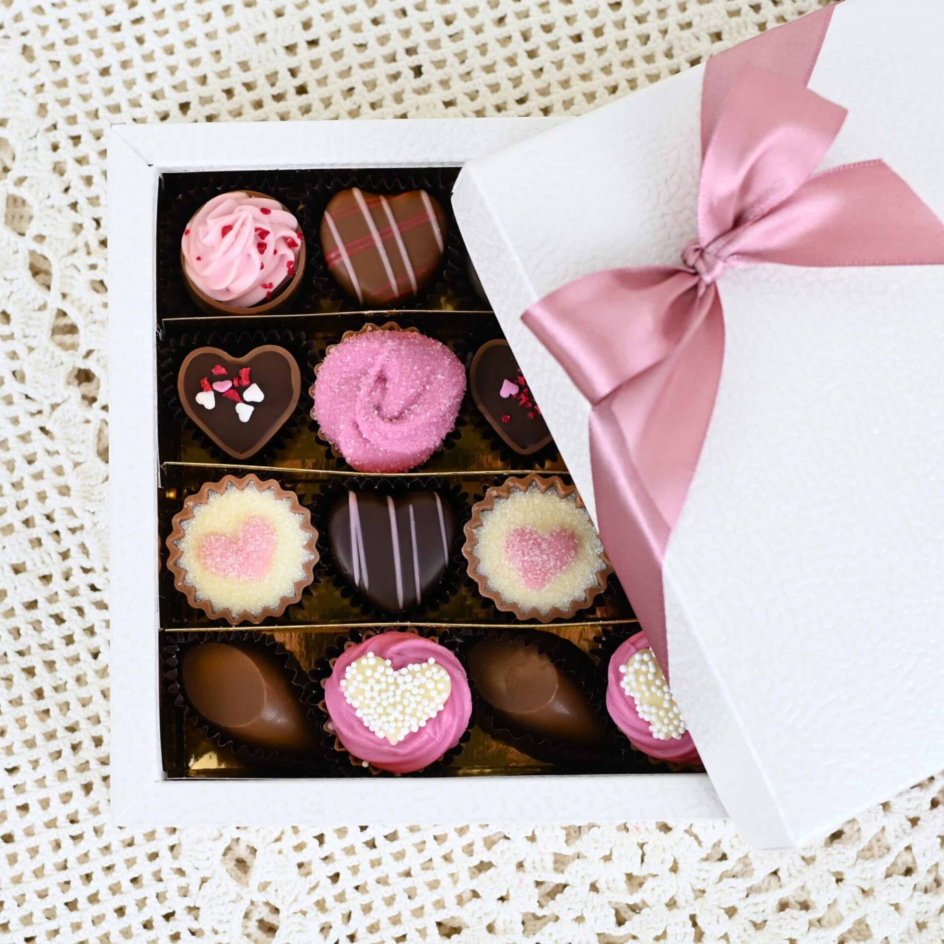 Tämä kaunis LOVE suklaarasia sisältää herkullisen valikoiman belgialaisia konvehteja hempeällä twistillä. Konvehteja on rasiassa 16 kappaletta. Kutakin makua on kaksi kappaletta. Rasiassa on näyttäviä herkullisia valko-, maito- ja tummasuklaisia konvehteja. Tässä on upea lahjaidea esimerkiksi äitienpäiväksi tai ystävänpäiväksi.