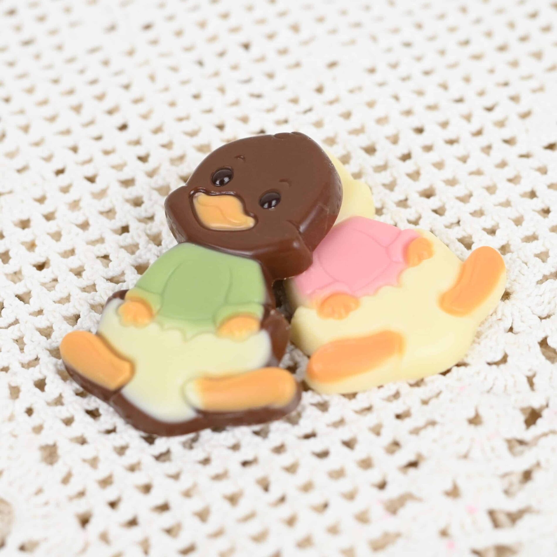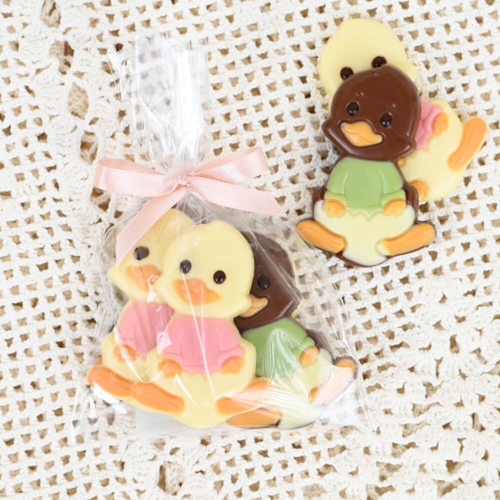 Kumpi tuli ensin, muna vai kana? Söpöt onnelliset suklaatiput maitosuklaasta ja valkosuklaasta.